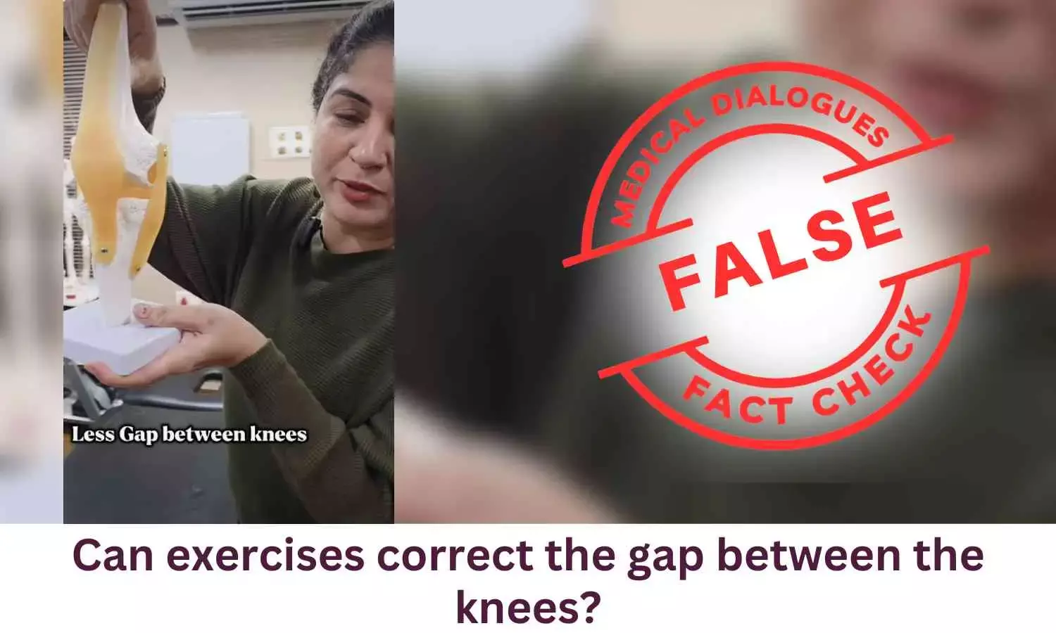 Dr. Prasad Dakshinamoorthy, Robotic Arthroplasty and Arthroscopy, Consultant – Orthopaedics, SRM Global Hospitals, Chennai in a conversation with The Medical Dialogues Fact Check Team said, "Exercises cannot correct a structural gap between the knees, commonly referred to as bow legs (genu varum) or knock knees (genu valgum), when it is caused by the underlying alignment of the bones. The distance between the knees or the ankles is primarily determined by the shape and alignment of the femur (thigh bone), tibia (shin bone), and the knee joint itself. Because this alignment is related to bone structure, exercise alone cannot change the position or shape of these bones.