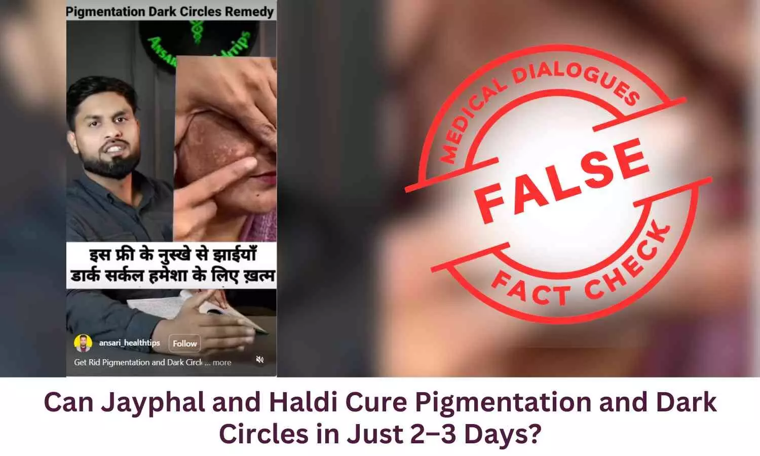 An Instagram post claims that Jayphal and Haldi Cures Pigmentation and Dark Circles in Just 2–3 Days. The claim is FALSE.