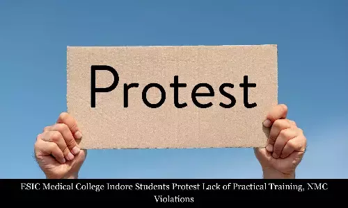 MBBS students at ESIC Medical College, Indore are protesting against the violation of National Medical Commission (NMC) norms as they have alleged that they are being taught almost entirely through textbooks and Powerpoint presentations, with little to no practical exposure even three months into the academic session, Dainik Jagran has reported.