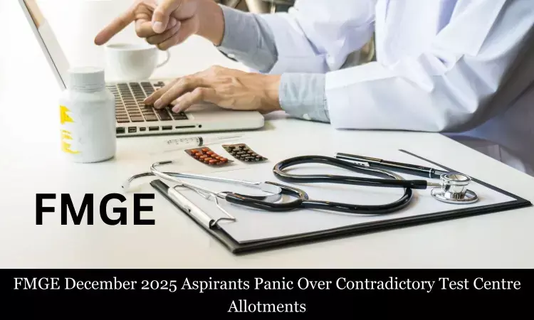 Confusion over the exam centres for the Foreign Medical Graduates Examination (FMGE) has triggered panic among aspirants as the National Board of Examinations in Medical Sciences (NBEMS) has allegedly allocated two different examination centres to candidates.