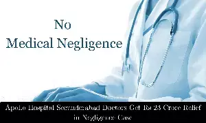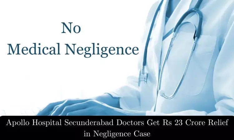 The National Consumer Disputes Redressal Commission has dismissed a Rs 23 crore medical negligence complaint filed against Apollo Hospitals Secunderabad and two of its doctors including an orthoapedic surgeon and consultant neurologist, over the amputation of a man's right leg.
