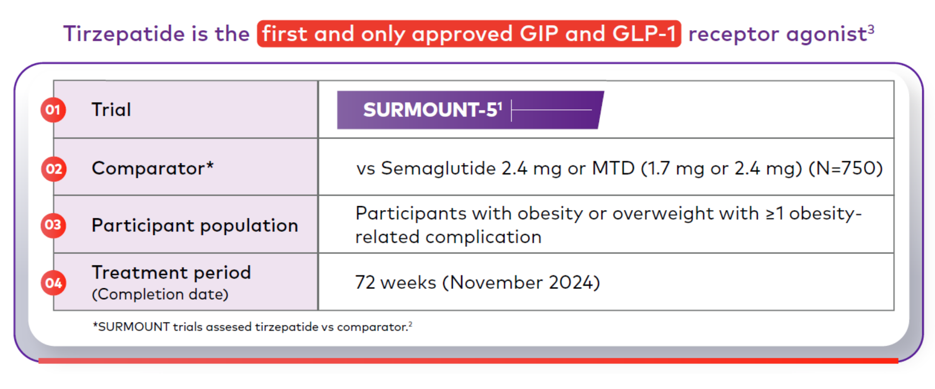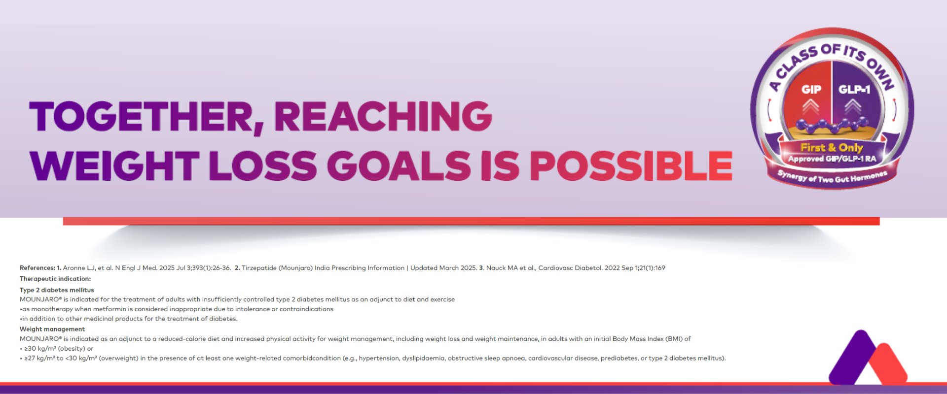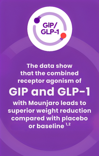 Mounjaro is the first and only GIP and GLP-1 receptor agonist approved for weight management that may help patients living with obesity achieve their weight goals.1-3,*