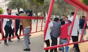 The videos of the incident circulating on social media show wardens, including the chief warden, along with security guards, punching the intern. The accused, who are employees of the medical college, are seen beating the doctor with sticks. The intern reportedly suffered injuries in the assault.