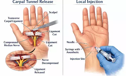Carpal Tunnel Release vs Steroid Injection: Similar Outcomes in First 6 Months, reveals study
