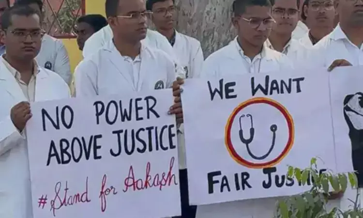 The medicos demanded that the case be heard in a fast-track court so that the accused could be punished quickly. They also demanded financial assistance from the government for the deceased medico's family.